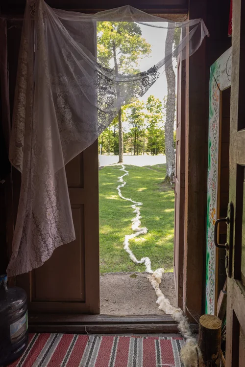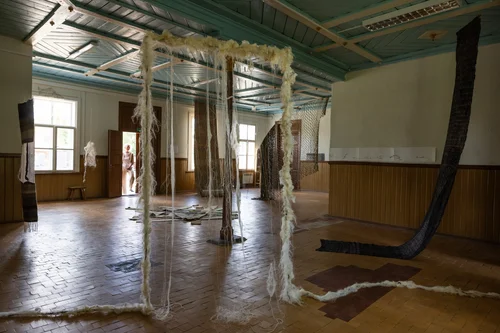 In August 2024 the artists, Laura Pavilonyte and Auste Varne from Lithuania and Ásta Vilhelmína Guðmundsdóttir from Iceland , all connected through textile art met in Marcinkonys in Lithuania. Their paths have crossed in Iceland and Lithuania throughout the years and at some point the artists decided to celebrate their friendship and exhibit together. Laura suggested this wonderful venue in Marcinkonys, an old train station, which still in use but also is used for cultural purposes through another Lithuanian artist Laura Garbstienė. This exhibition was built on deep friendship and connection between Lithuania and Iceland and the importance of communication between people.